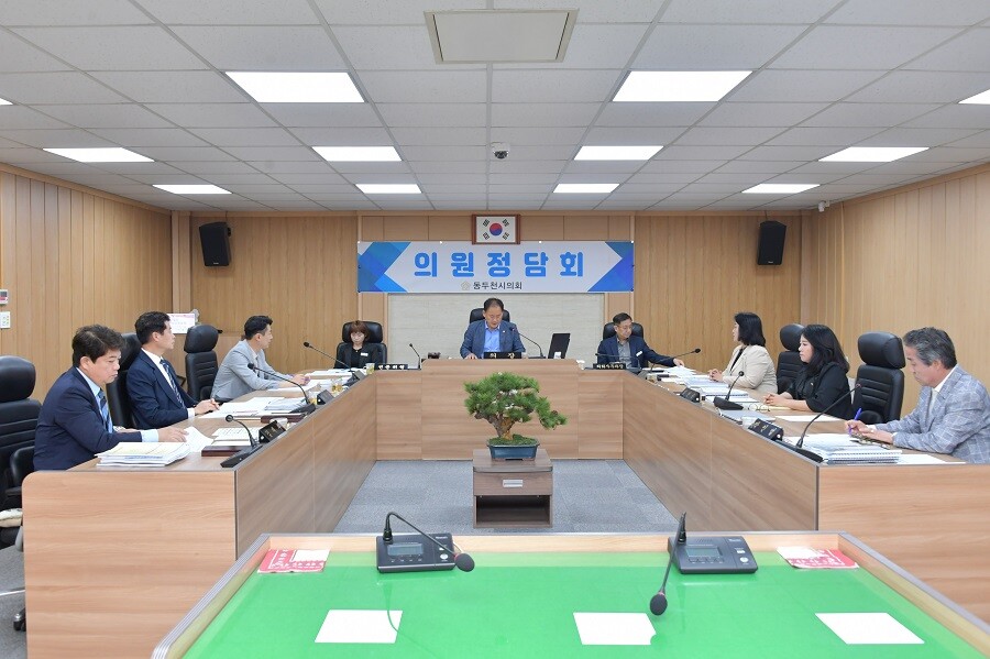 [이코노미세계] 동두천시의회(의장 김승호)는 16일 의원회의실에서‘5월 중 동두천시의회 의원정담회’를 개최했다. 의원들은 의원발의 조례안과 집행부에서 제출한 안건에 대해 제안 설명을 듣고 담당 공무원 및 업무 관계자들과 깊이 있게 의견을 나눴다.