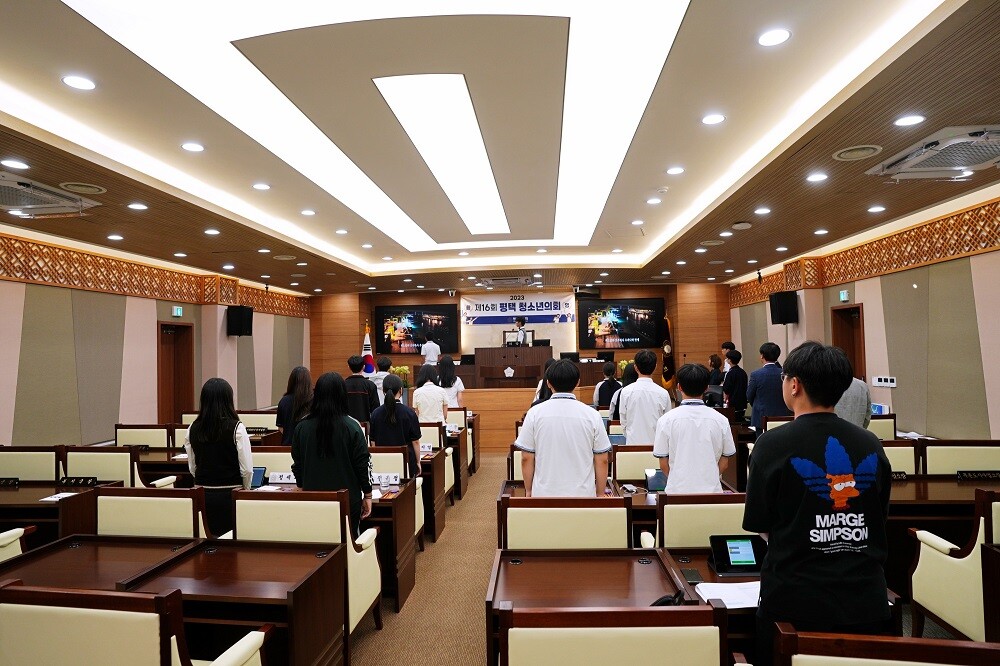 이날 청소년의회는 홍보영상 시청, 입교식, 개회식 및 본회의, 의결안건 전달, 수료증 전달 순으로 진행됐다. 학생들은 「담배꽁초 수거 보상제에 대한 조례안」(평택학생자치위1), 「오토바이 지상 출입 조건부 혀용, 속도 제한에 관한 조례안」(평택학생자치위2) 등 2건의 안건을 상정해 제안설명, 질의답변, 찬반토론, 전자투표를 거쳐 의결함으로써 지방의회의 역할과 기능을 이해하는 시간을 가졌다.
