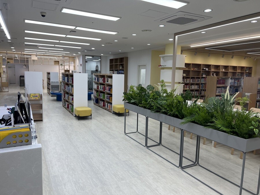 또 새롭게 조성된 어린이를 위한 전용공간에는 계단형 소파를 제작해 자유롭고 재미있게 책을 볼 수 있는 친근한 공간으로 꾸몄으며, 벽면과 기둥을 활용하여 큐레이션 서가를 제작해 다양한 전시 공간을 조성했다. 아울러 창 측 벽면 공간에 조망형 테이블과 안락한 의자를 비치해 시민들이 편안하게 책을 읽으며 힐링하는 공간을 마련했다.