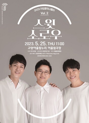 [이코노미세계] 고양문화재단은 오는 5월 25일 오전 11시, 「2023 아침음악나들이」 시리즈 두 번째 프로그램으로 <스윗소로우(인호진, 송우진, 김영우)> 콘서트를 고양어울림누리 어울림극장에서 개최한다. 아침음악나들이는 매년 정상급 아티스트들을 만나볼 수 있는 고양어울림누리의 대표적인 오전 콘서트로, 지난 3월 첫 공연 <존노 & 고영열>의 무대를 성공적으로 마친 바 있다.