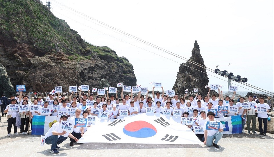 이날 더불어민주당 의원들은 독도에 도착하자마자 ‘독도는 우리 땅의 노래’에 맞춰 독도수호에 대한 의지를 드러내는 플래시몹을 진행했다.