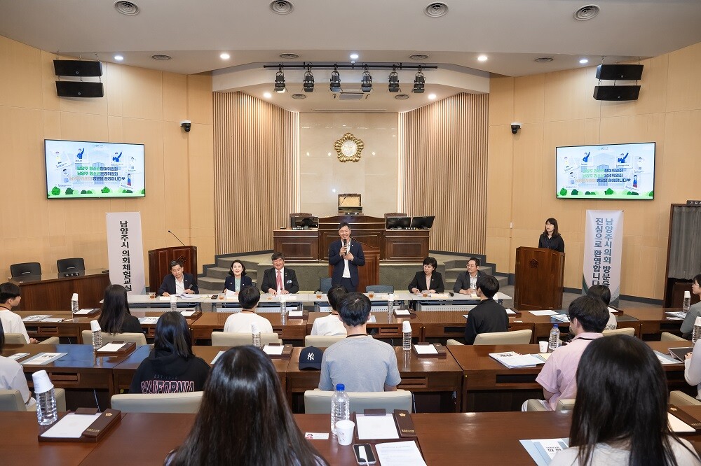 남양주시의회에서는 학생들의 민주시민의식을 함양하고 지방의회의 역할과 기능을 효과적으로 학습할 기회를 제공하고자 의회체험교실을 운영하고 있다.이날 체험교실은 남양주시 청소년참여위원회(늘푸른청소년위원회), 청소년운영위원회(해밀) 학생 30명을 대상으로 진행됐으며 김현택 의장을 비롯해 김지훈(국) 자치행정위원장, 김영실 복지환경위원장, 이경숙, 한근수, 김동훈 의원 등 지역의원들도 함께했다.