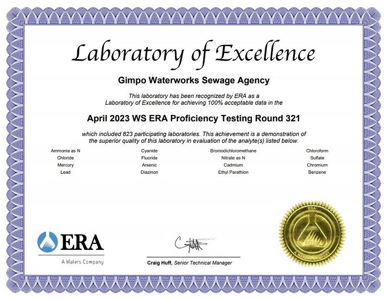 [이코노미세계] 김포시 ‘맑은물사업소 먹는물검사기관(소장 박정우)’은 2023년 먹는물 분야 국제숙련도 시험에 참가해 ‘우수 분석기관(Laboratory of Excellence) 인증’을 받았다.