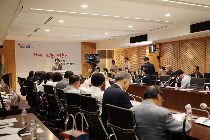 회견 말미에는 “무엇보다도 시민들과의 소통이 필요하다 시장실을 정문옆으로 옮기고 찾아가는 시장실과 시장직통문자로도 부족하다고 느낀다. 하지만 시민들이 어디가서든지 ‘나 군포살아요’라고 자신있게 말할수 있는 군포를 함께 만들어 나가자”고 말했다.