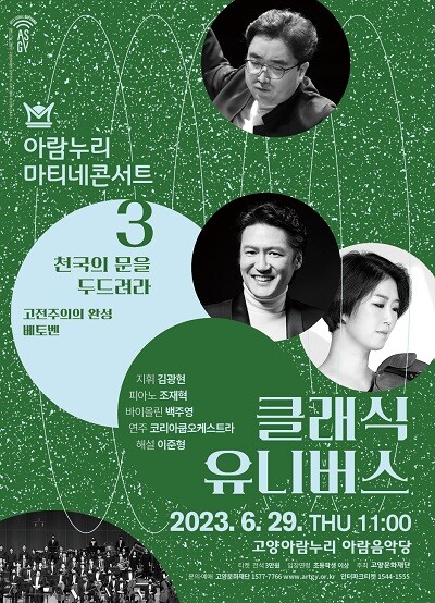 [이코노미세계] 고양문화재단은 「2023 고양아람누리 마티네콘서트」 세 번째 공연 <클래식 유니버스 3 - 천국의 문을 두드려라>를 6월 29일 오전11시, 고양아람누리 아람음악당에서 선보인다.