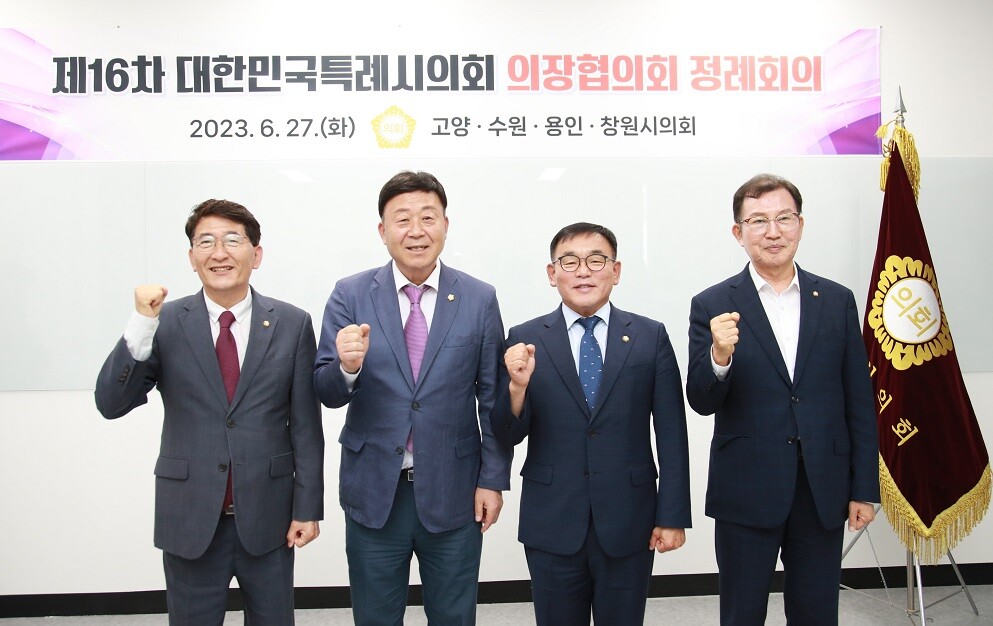이날 회의에는 윤원균 의장을 비롯해 김영식 고양특례시의회 의장, 김이근 창원특례시의회 의장, 김기정 수원특례시의회 의장 등 관계자들이 참석했다.