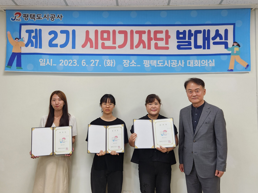 이날 발대식에서는 위촉장 수여를 시작으로 공사 주요 사업 및 시설을 소개하고 향후 기자단 활동 계획에 대해 공유하는 시간을 가졌다. 강팔문 평택도시공사 사장은 환영사를 통해 올해 공사의 소통 메신저 역할을 해줄 2기 시민기자단의 출발을 격려했다.
