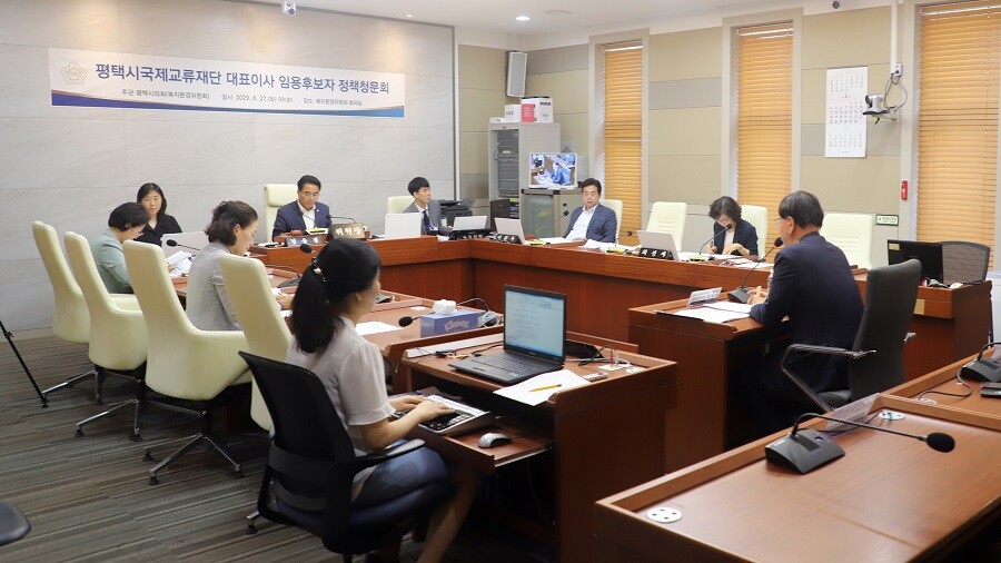 한편, 청문 대상인 정종필 평택시국제교류재단 임용후보자는 부산시국제교류재단 사무총장을 역임한 바가 있다.