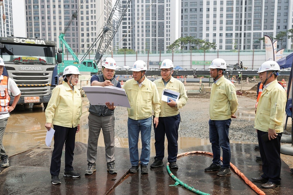 덕은지구는 작년 폭우 시 인접산지 토사가 흘러내려 아파트에 큰 피해가 발생된 지역으로, 피해 방지를 위해 설치된 옹벽을 살피며 LH에 추가적인 피해가 발생하지 않도록 최선을 다해줄 것을 당부하였고, 인근 지식산업센터 건설현장을 방문해 지하터파기 공사가 한창인 현장을 살피며 폭우나 태풍 시 피해가 없도록 공사 관계자들을 독려했다.