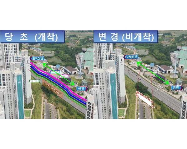개착공법으로 국도 45호선을 공사 하면 차선축소(3차선→2차선), 공사 구간 확보를 위한 임시우회도로 운영, 출·퇴근 교통혼잡, 공사 소음(항타기, 복공판) 등의 주민 불편이 공사 기간(3년) 동안 발생할 것이 예상됐다.