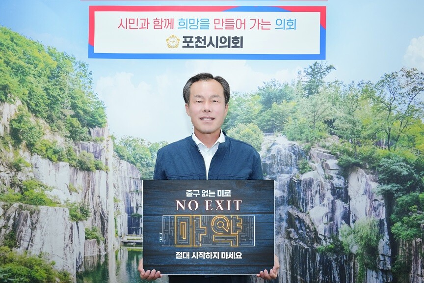 [이코노미세계] 포천시의회 서과석 의장이 ‘NO EXIT’마약범죄 예방 릴레이 캠페인에 31일 동참했다.