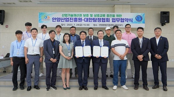 [이코노미세계] 안양산업진흥원은 지난 7월 28일 창업지원센터 9층 강당에서 대한탐정협회와 산업기술재산권 보호 및 상호교류 증진을 위한 업무협약을 체결했다고 1일 밝혔다.
