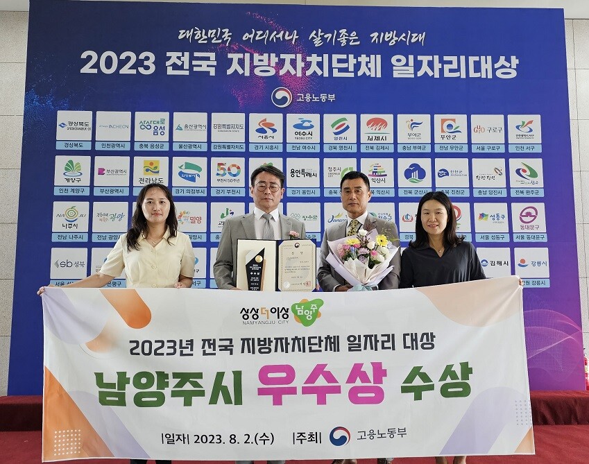 [이코노미세계] 남양주시(시장 주광덕)는 2일 정부세종컨벤션센터에서 열린 고용노동부 주관‘2023년 전국 지방자치단체 일자리 대상’에서 일자리 공시제 부문 우수상을 받았다고 밝혔다.