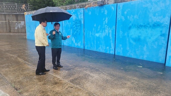 박강수 마포구청장은 직접 유수지 현장을 일일이 살펴보며 호우에 따른 유수지 작동 상황을 점검했다.