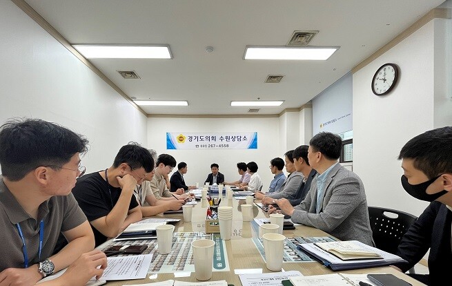[이코노미세계] 경기도의회 도시환경위원회 문병근 의원(국민의힘, 수원11)은 10일 경기도의회 수원상담소에서 경기도, 경기주택도시공사, 수원특례시 관계자와 함께 경기주택도시공사 업무 추진 현황 점검을 위한 정담회를 개최했다.