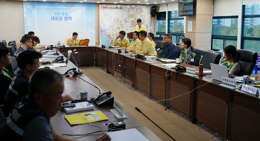 [이코노미세계] 평택시의회(의장 유승영)는 지난 10일 태풍의 접근으로 비상근무 중인 평택시 직원들을 격려하기 위해 평택시청 재난안전상황실을 방문했다.
