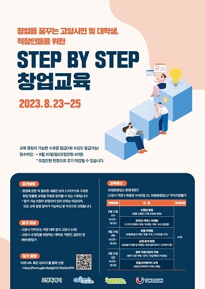 고양특례시가 주최하고 고양산업진흥원 28청춘창업소가 주관하는 ‘STEP BY STEP’의 참가 신청은 오는 20일까지 온라인 링크를 통해 가능하다.