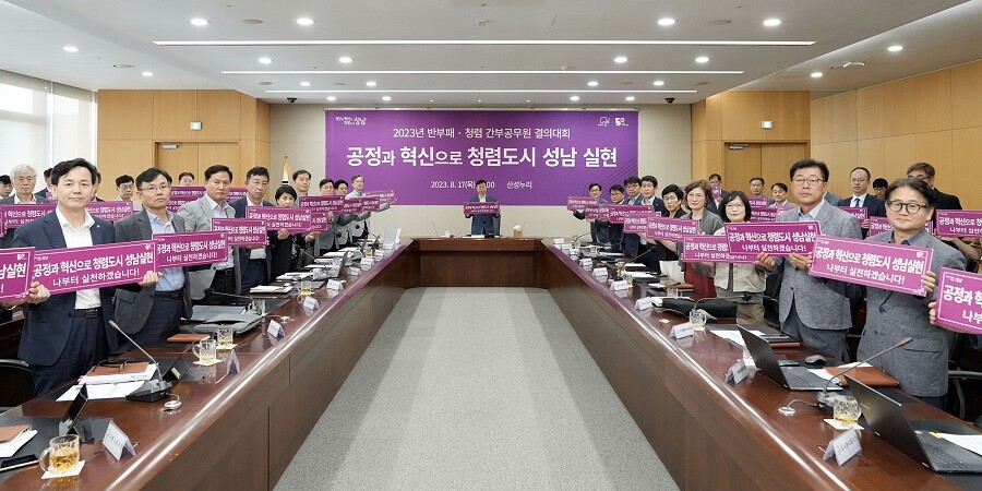 아울러 성남시는 공직 내부의 청렴도를 향상하기 위해 ▲전 직원 대상 청렴서약서 제출 ▲청렴 의식 강화를 위한 맞춤형 청렴 교육 시행 ▲자발적인 참여를 위한 청렴 슬로건 공모전 및 청렴 메시지 공모전 ▲청렴 퀴즈대회 및 청렴 캠페인 실시 ▲간부 공무원의 솔선수범 및 경각심 부여를 위한 간부 공무원 청렴도 측정 등 다방면으로 반부패 청렴 시책을 추진하고 있다.