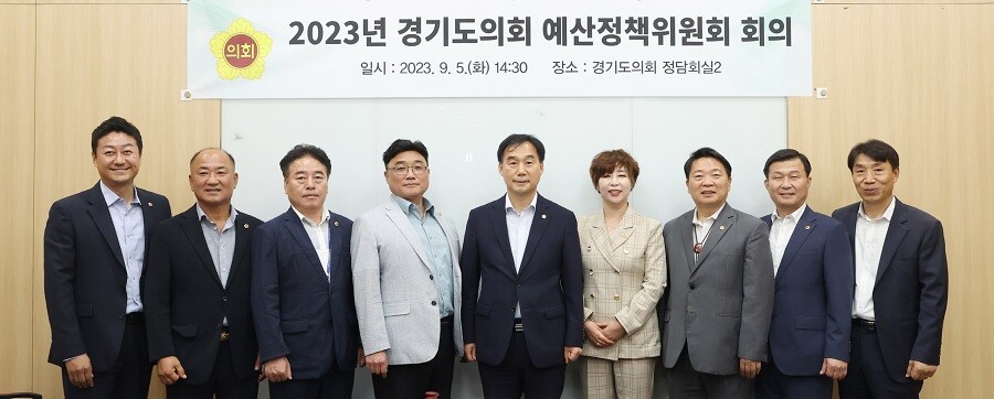 이날 회의에는 예산정책위원회 윤종영 위원장(연천), 김회철 부위원장(화성6), 한원찬 위원(수원6), 정경자 위원(비례) 방성환 위원(성남5), 김동규 위원(안산1), 이홍근 위원(화성1), 이영희 위원(용인1), 김진경 위원(시흥3), 오세풍 위원(김포2)이 참석하였다.